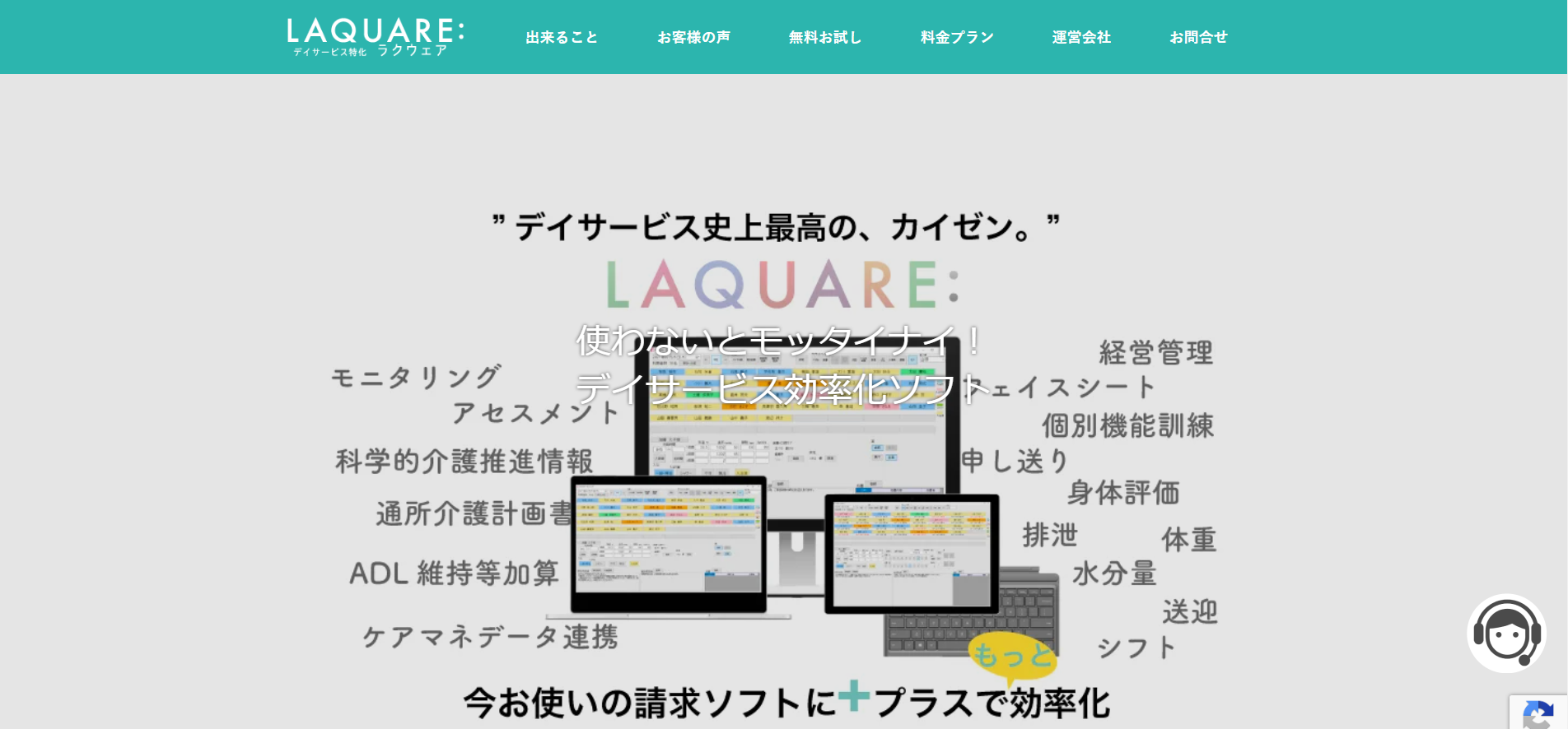ラクウェア(LAQUARE:)は、デイサービスに特化した業務効率化ソフトです。