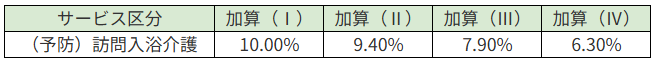 - 訪問入浴介護における単位数は以下の通りです。