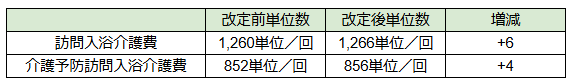 訪問入浴介護における基本報酬は以下の通り、従来より増加しました。
