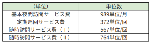 - 定期巡回・随時対応型訪問介護看護における単位数は以下の通りです。
