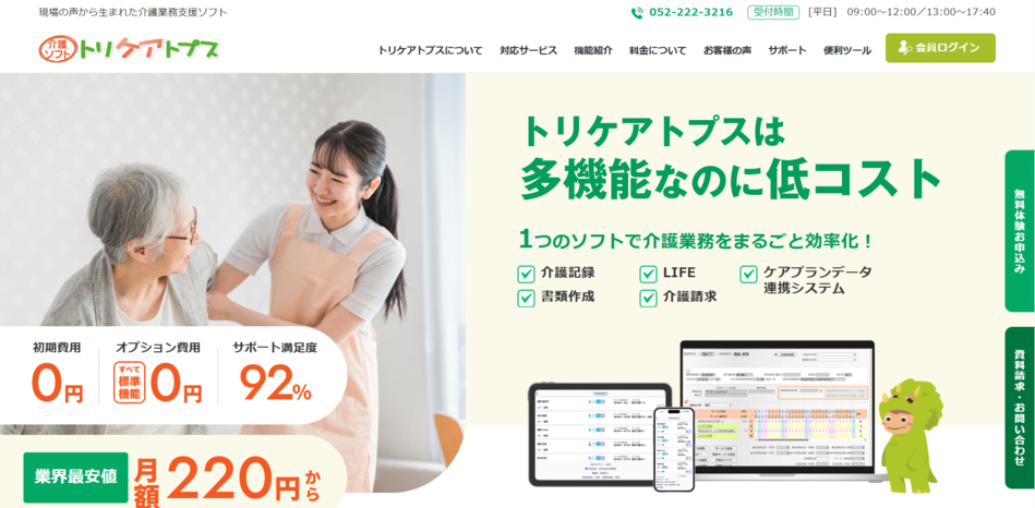 介護ソフトのトリケアトプスは、介護現場の負担を軽減し、効率化を行うための介護ソフトです。