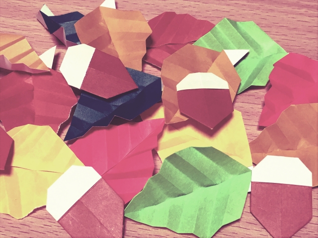 創作活動は手先を使い、脳を活性化させる効果が期待できます。秋の風景を描く絵画レクリエーションや、ちぎり絵、紅葉や秋の食材にちなんだ折り紙飾りなどが人気です。創作活動はそれぞれの利用者さんの状態によって難易度を調整できるので、幅広い方が楽しめるレクリエーションです。完成した作品を施設内に飾ることで、秋らしい雰囲気を演出できます。秋の折り紙の折り方は以下のリンクをご参考にしてください。