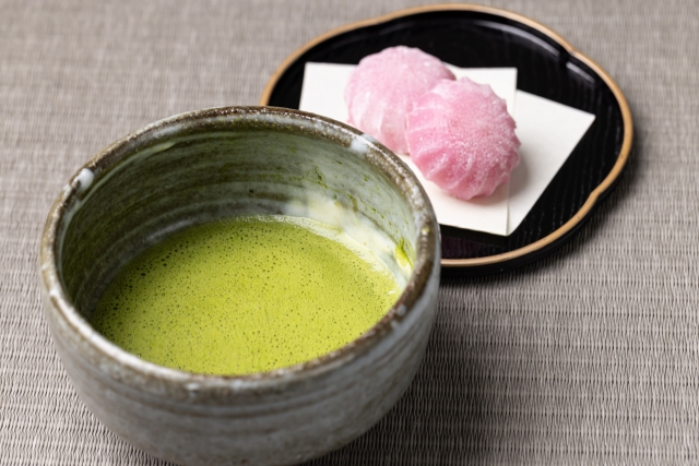 - 抹茶をゆっくり味わいながら、和菓子をいただく。