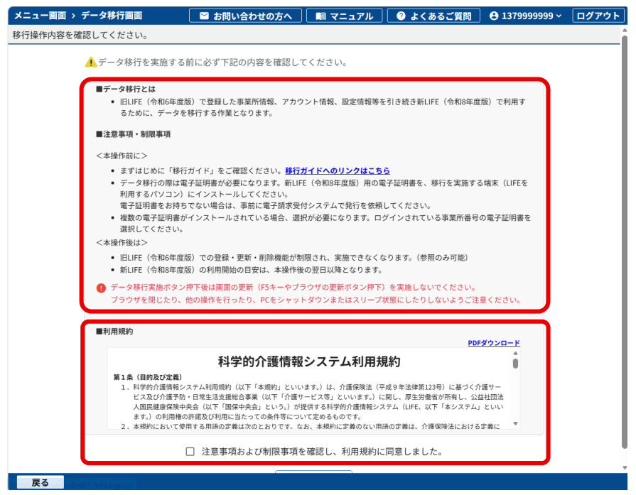 4.画面に表示されている移行操作内容と利用規約を確認します