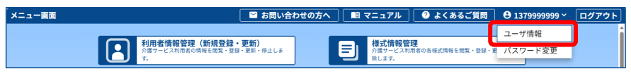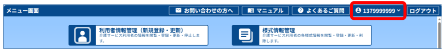 1.メニュー画面右上のログインユーザ名をクリックします
