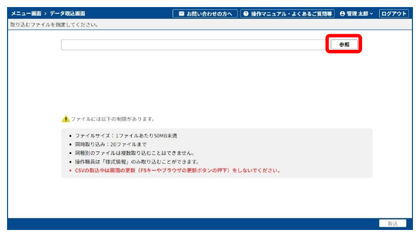 - 同時に取り込めるファイル数は20 ファイルまで。