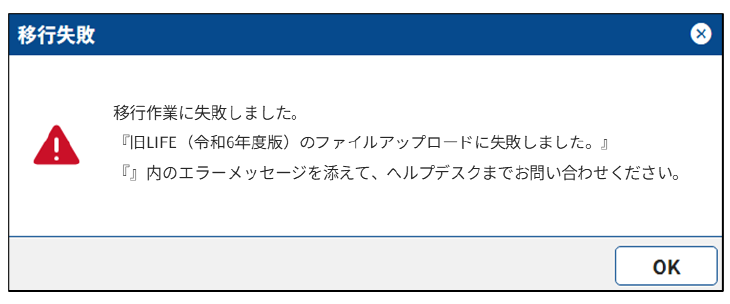 Q.「移行作業に失敗しました。」というエラーが出ました。どうしたら良いでしょうか?